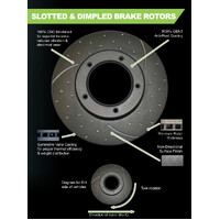 THIS PACKAGE INCLUDES 2 X RDA DIMPLED SLOTTED FRONT DISC BRAKE ROTORS + RDA PHANTOM CERAMIC BRAKE PADS.