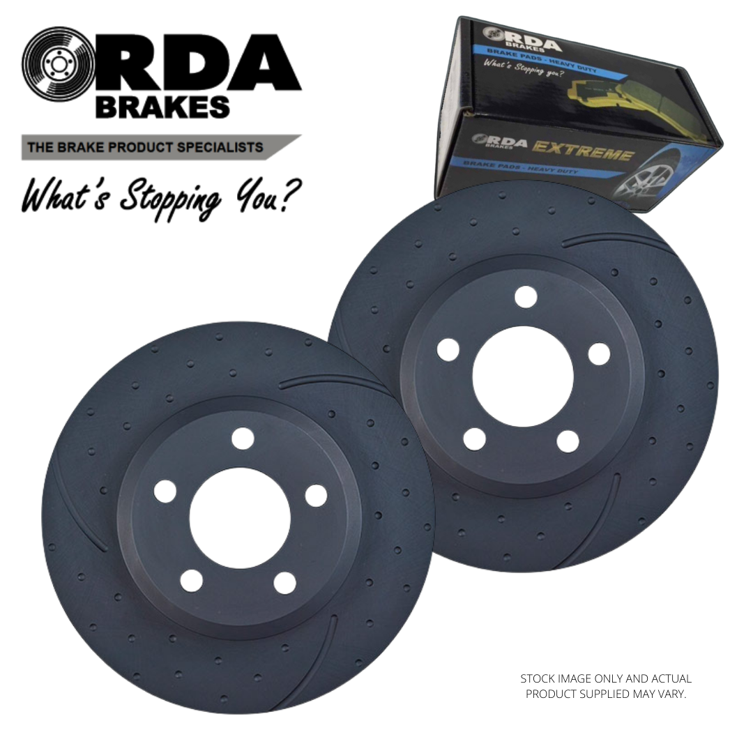 THIS PACKAGE INCLUDES 2 X RDA DIMPLED SLOTTED REAR DISC BRAKE ROTORS + RDA EXTREME HEAVY-DUTY BRAKE PADS.