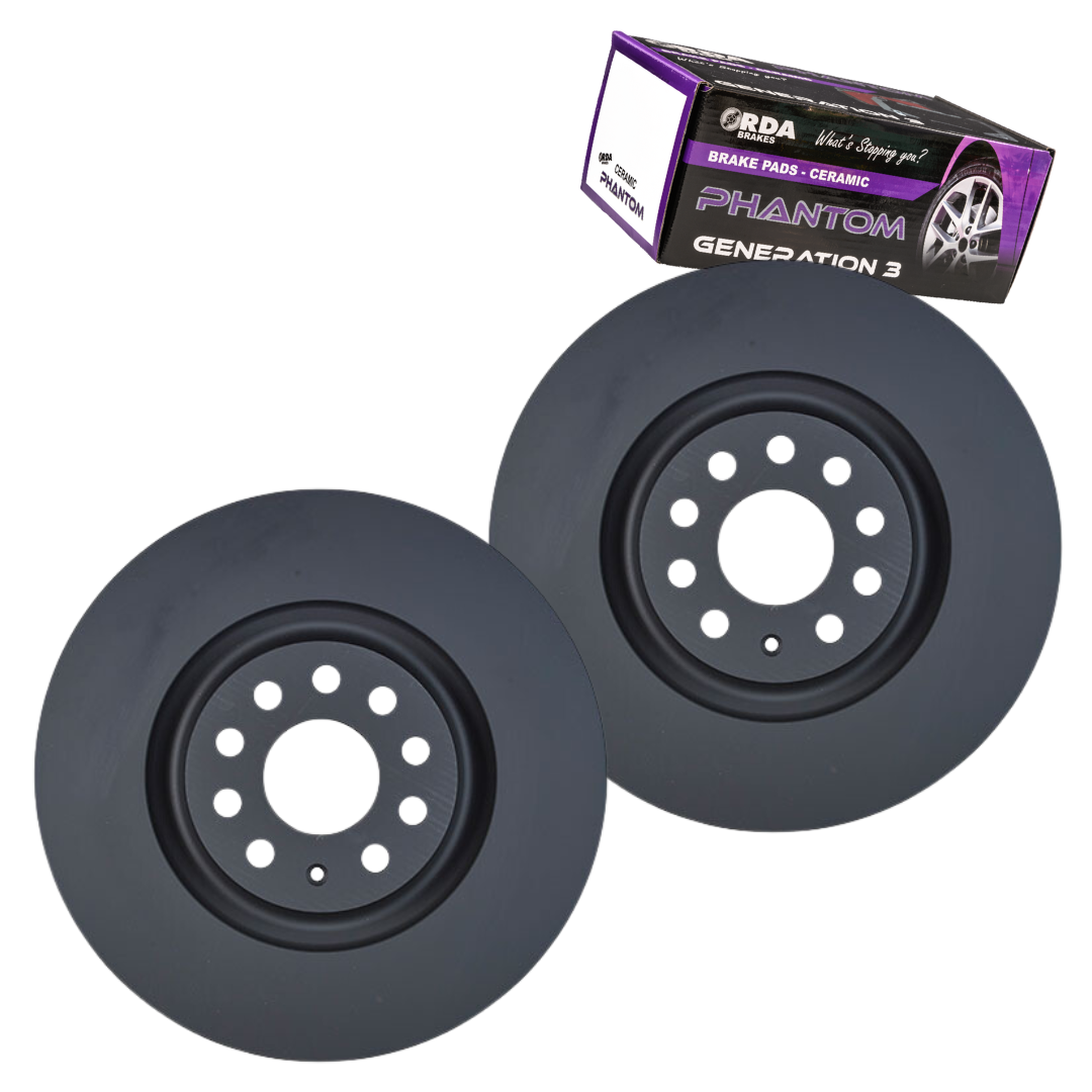 THIS PACKAGE INCLUDES 2 X RDA FRONT DISC BRAKE ROTORS + RDA PHANTOM CERAMIC BRAKE PADS.