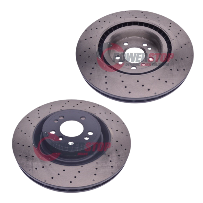 THIS PACKAGE INCLUDES 2 X POWERSTOP CROSS-DRILLED FRONT DISC BRAKE ROTORS.